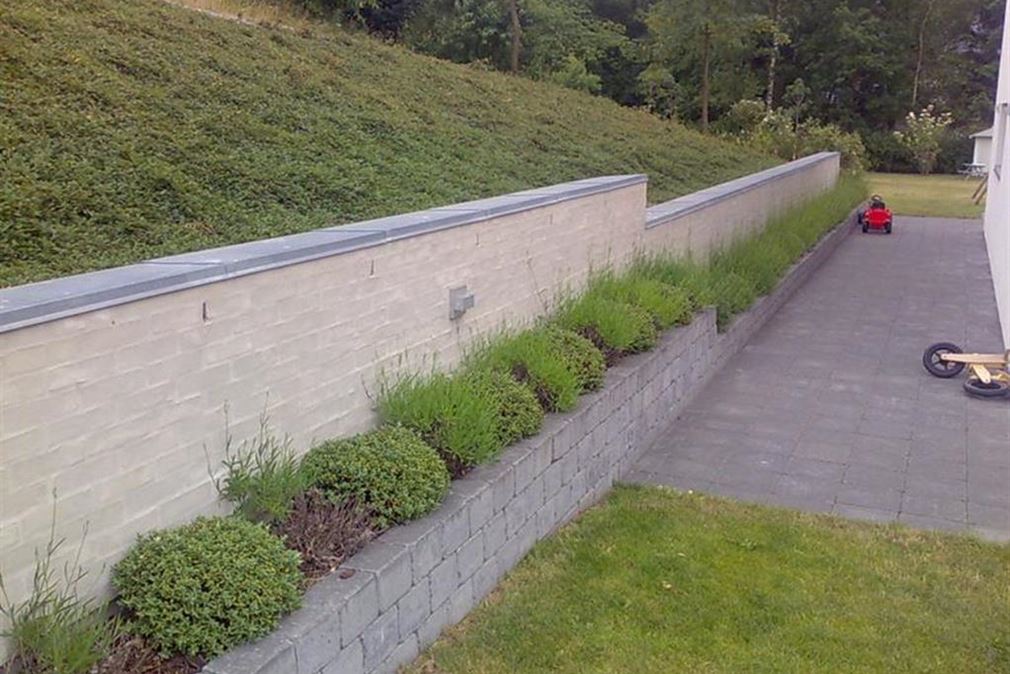 Støttemur, støbt på bagside, mursten på facade